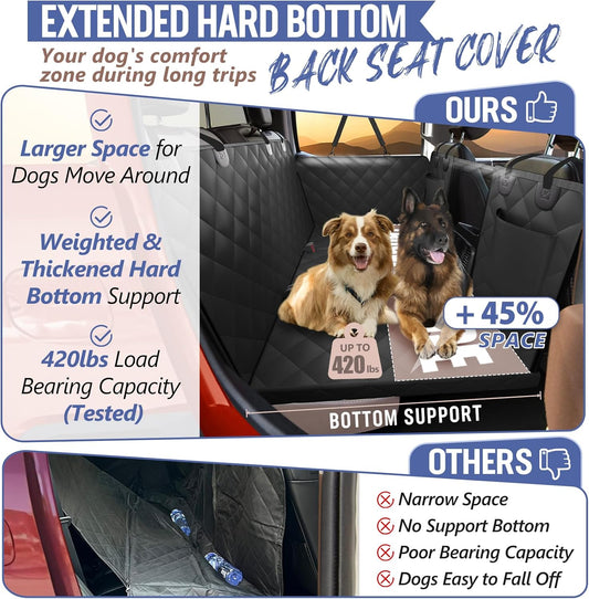 Dog Car Seat Cover for Back Seat, Hard Bottom Back Seat Extender for Dogs, Holds 420Lbs, Waterproof Pet Hammock Protector, Thick and Durable Dog Seat Cover for Truck, Car, Suv-Black